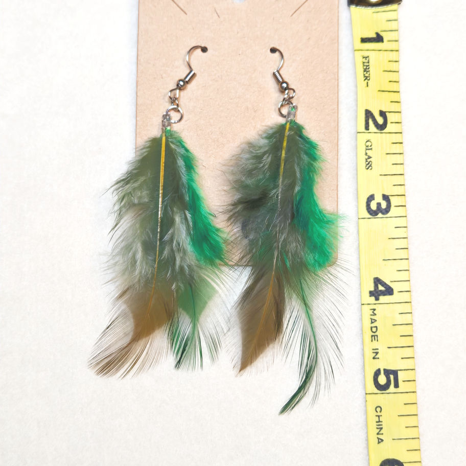 Feather Earrings Green & Brown